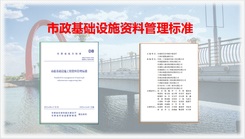 為提高我省市政基礎(chǔ)設(shè)施工程建設(shè)資料管理水平,甘肅省住房和城鄉(xiāng)建設(shè)廳、蘭州市建筑業(yè)聯(lián)合會(huì)主持編撰了甘肅省地方標(biāo)準(zhǔn)《市政基礎(chǔ)設(shè)施資料管理標(biāo)準(zhǔn)》(DB62/T 3232-2022),公司作為甘肅省市政工程行業(yè)的龍頭企業(yè),應(yīng)邀參加該標(biāo)準(zhǔn)的編制工作,該標(biāo)準(zhǔn)目前已出版發(fā)行。